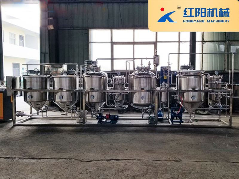为了满足国内外各类大小油厂精炼油脂的需要,新乡红阳公司特开发日处理量300公斤到100吨油脂精炼设备。此类设备分别可生产国际一、二级油、精制油(烹调油、色拉油)和调制油。工艺生产设备有间歇式、半连续式,以满足用户的需要,一般日出理毛油量300公斤到20吨宜采用间歇式为主,20吨以上宜采用半连续式或连续式精炼设备。  我公司研制开发的油脂精炼设备,具有独特先进新颖的工艺设备,性能可靠,机械化程度高,工艺技术指标先进等特点,有系列化产品,还可根据用户对精炼设备的要求,进行合理组合,新开发研制成功的小型精炼成套设备(处理量300—3000Kg/日)将多种单独的设备组合在一起,设备本身配备热源,可不需另购蒸汽锅炉,具有投资少,见效快,占地面积小等特点。此设备可一机多用,即可用于生产国际一、二级油,又可生产烹调油、色拉油。是城乡油脂加工厂的理想设备。